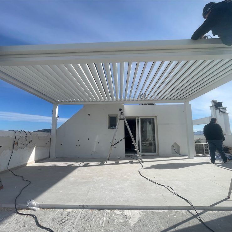 Εξωτερική κάθετη σκίαση G WIRE 114 LOCKSY- Τεντοπέργκολα – τέντα κασέτα ΚUBATA και εσωτερικά ROLLERS σε οικία στην Παιανία