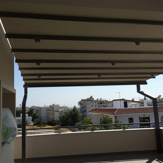 Στήριξη και ΣτεγανοποίησηΗ στήριξη της περγκοτέντας έγινε πάνω σε μεταλλική κατασκευή από κοίλο δοκό που κατασκευάστηκε ειδικά για την εφαρμογή αυτή, εξασφαλίζοντας τη σταθερότητα και τη μακροχρόνια λειτουργία της. Η κατασκευή περιλαμβάνει 4 οδηγούς και 4 κολώνες για μέγιστη στήριξη και ανθεκτικότητα. Στο πίσω μέρος της, τοποθετήθηκε στέγαστρο αλουμινίου, το οποίο προστατεύει την πέργκολα όταν είναι κλειστή, ενισχύοντας τη στεγανότητα και την αντοχή στις καιρικές συνθήκες.